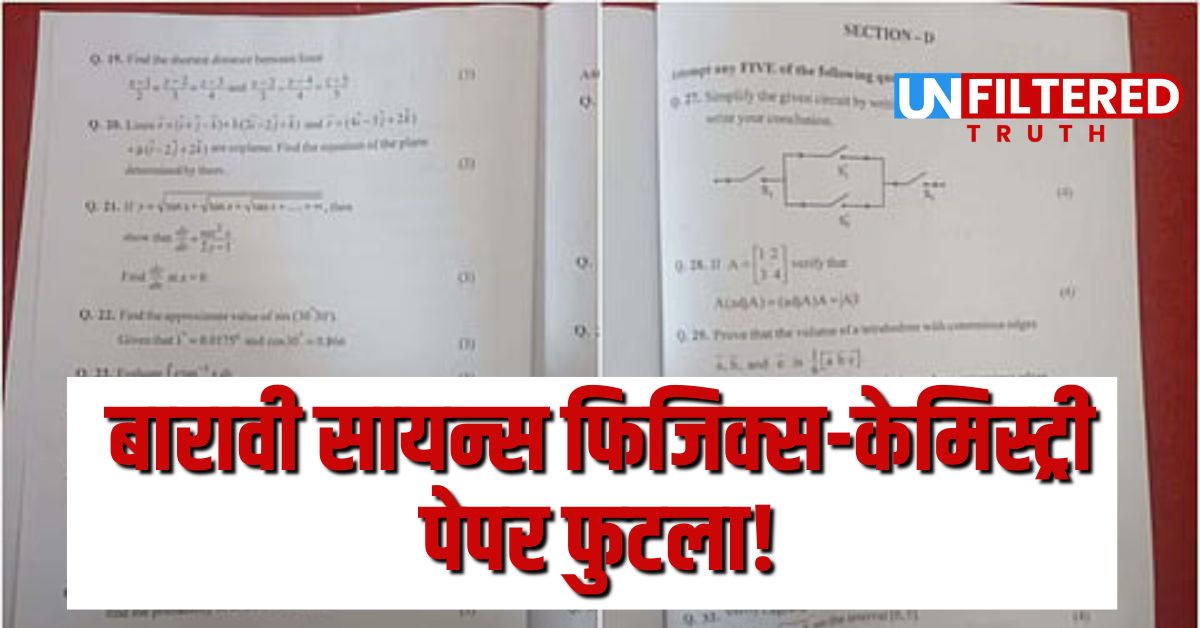 राज्यात सुरू असलेल्या बारावीच्या परीक्षेदरम्यान विज्ञान शाखेतील फिजिक्स आणि केमिस्ट्री या विषयांच्या प्रश्नपत्रिकांबाबत गंभीर प्रकार समोर आला आहे. या संदर्भात नागपूर शहरातील सदर पोलीस ठाणे...